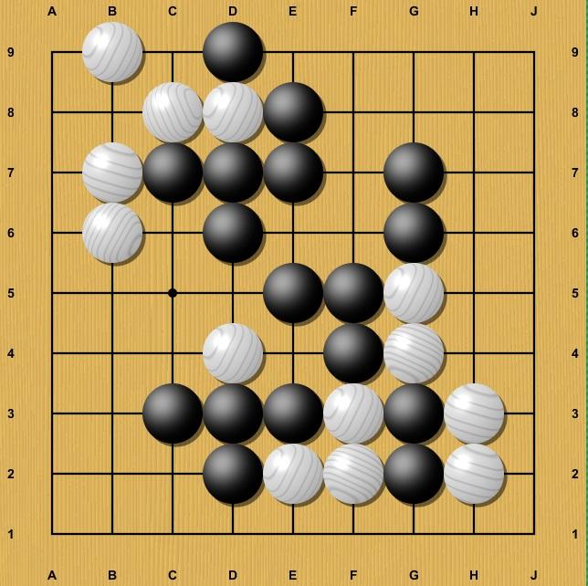 左上に死活の形ができたので、問題として「左上を取る手があります」や、