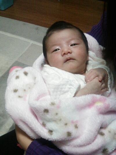 やっとお顔見れた〜可愛い☆ お父さんそっくりやねと思いました。 第一印象(。-_ -。)w