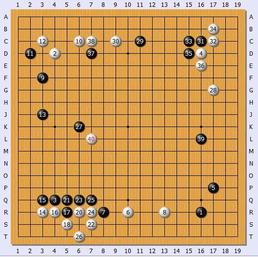 その座標軸を使って、例えば右上の星ならpp、左下の星ならddとなります。そのようにしてお望みの進行を入れます。黒の第1手が右上星で、白の初手が左上星なら