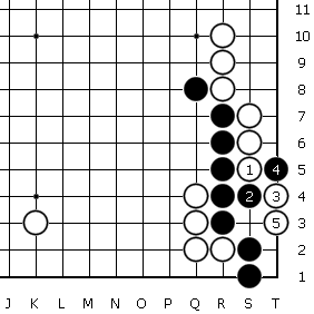 後で気がつきましたが、2つ上の図では本図のように打つ方が白は地が2目得でした。