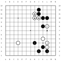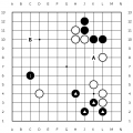 白は続いて3などと空き隅に回り、ちょっと構えがだだっ広い気はするもののまだまだの碁だったろうか。