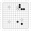 場所は囲碁クエスト。 持ち時間がそれほど与えられていないので、少ない時間で打ちたいときや、同じだけの時間で19路より局数をこなしたい場合に良い場所だと感じた。