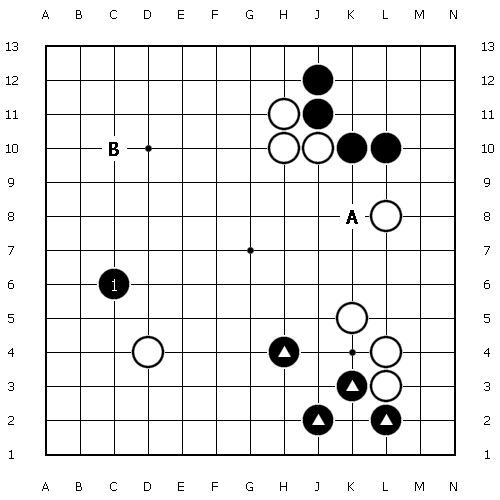 黒としてはAのツケよりも、黒1と大場に回っておく方が確実な打ち方である気がしました。