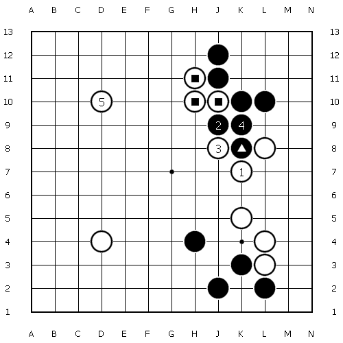 参考図2で黒7のツケ(本図の黒△)を有力視した書き方をしましたが、間違っていたかもしれません。