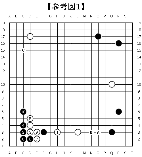 黒10となった後、白からAとヒラく手は下辺が平坦な感じで面白くないのに対し、黒からBとヒラく手はまずまずの手であることが気に入らなかったのが理由。