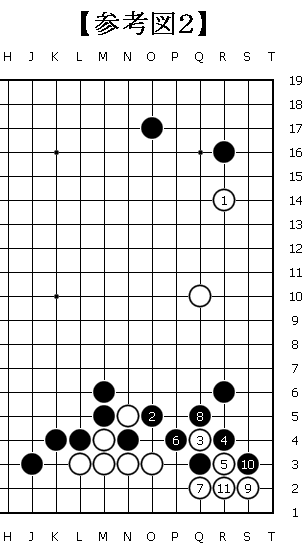 下に示す参考図2と比較すると白黒の厚みが格段に違うが、隅の実利の具合も違っているので微妙なところ。