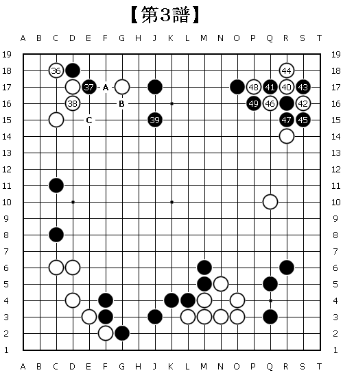 機を見て黒A、白B、黒Cと動き出すのを狙っている。