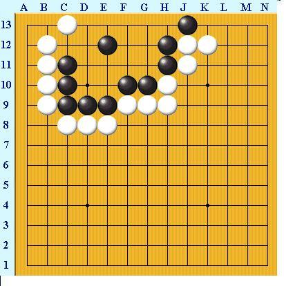 (;GM[1]FF[1]SZ[13]PL[W]NE[W]SS[@@]AP[StoneLeaf2]AB[cc][cd][ce][de][eb][ee][fd][gd][hb][hc][ia]AW[bb][bc][bd][be][ca][cf][df][ef][fe][ge][hd][he][ib][ic][jb])